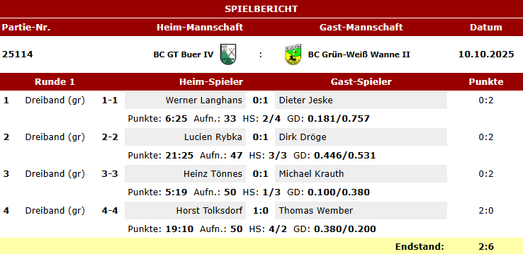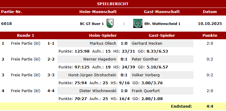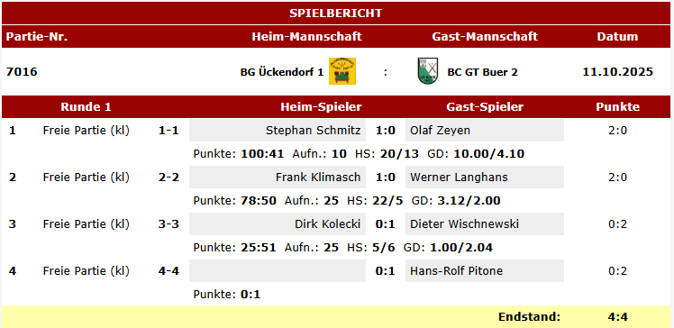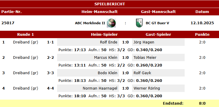 Hier die Spielberichte unserer Teams Karambol im BVW vom letzten Wochenende.