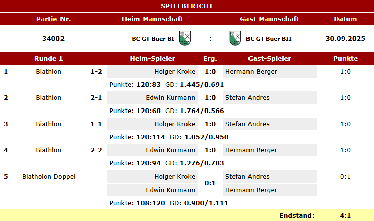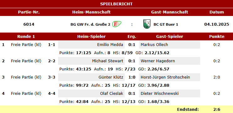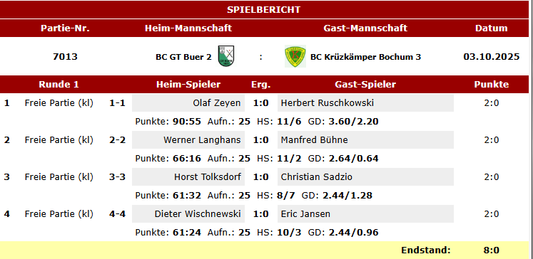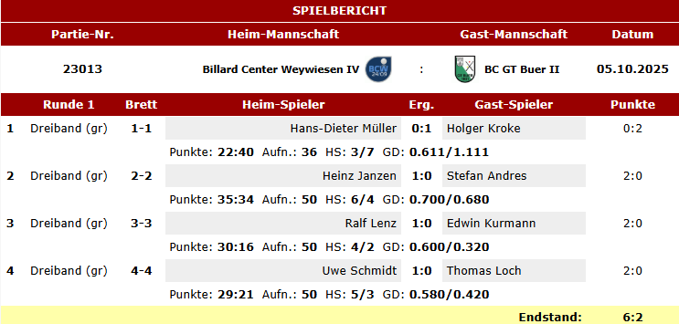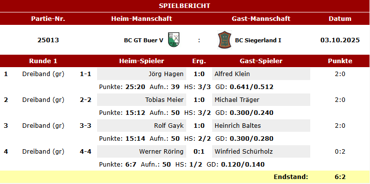 Hier die Spielberichte unserer Teams Karambol im BVW vom letzten Wochenende.